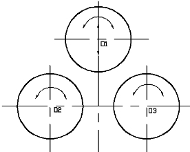 1.1:主傳動(dòng)指上輥繞O1,下輥分別繞O2、O3作順時(shí)針或逆時(shí)針旋轉(zhuǎn)。它是以兩根下輥為主驅(qū)動(dòng) ,由主電機(jī)、主減速機(jī)、連軸器、及開式齒輪組成。工作時(shí)上輥由板料間的摩擦力帶動(dòng),同時(shí)作為從動(dòng)軸,起調(diào)整擠壓工件的作用。輔傳動(dòng)由單獨(dú)的傳動(dòng)系統(tǒng)控制上輥的上升或下降。由上輥升降電動(dòng)機(jī)、減速機(jī)、連軸器、蝸輪、蝸桿、絲母、絲桿組成。工作時(shí),由減速機(jī)帶動(dòng)蝸桿轉(zhuǎn)動(dòng)蝸輪內(nèi)絲母旋轉(zhuǎn),使絲桿及上輥軸承座作升降運(yùn)動(dòng),使上輥上升或下降。卷板時(shí),在上輥的下降壓力下,通過(guò)兩下輥正反轉(zhuǎn)動(dòng),使板料達(dá)到所需的曲率,形成預(yù)計(jì)的圓形或弧形。